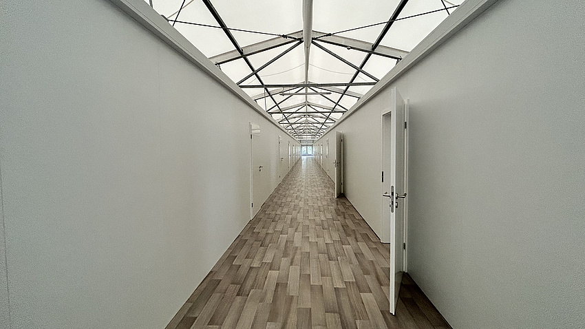 Für die als kreiseigene Erstaufnahmeeinrichtung genutzten Leichtbauhallen hat der Wetteraukreis Fördermittel erhalten.