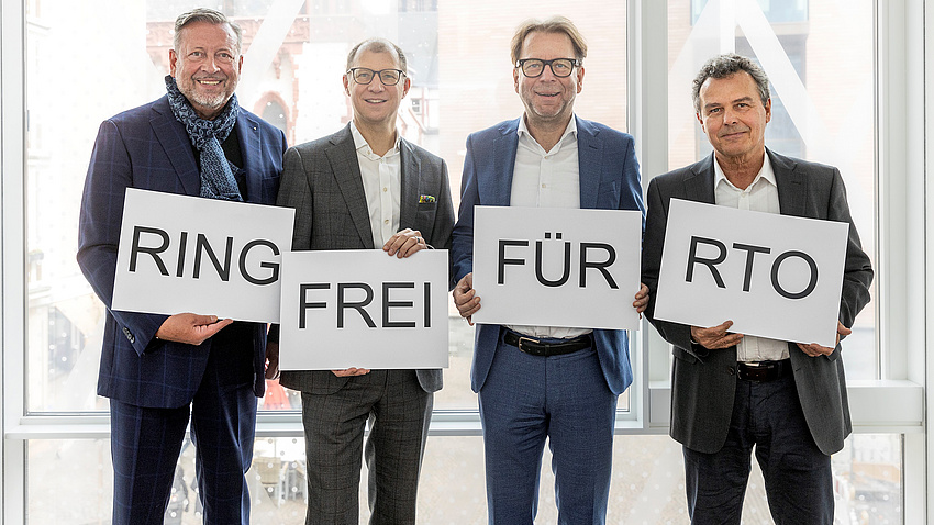 Ring frei für die Regionaltangente Ost (von links): Prof. Knut Ringat, Jan Weckler, Wolfgang Siefert und Rüdiger Krenkel. Foto: RMV/Arne Landwehr