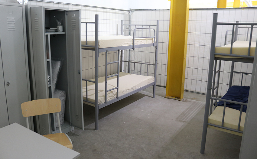 Rund 80 Geflüchtete aus weltweiten Krisengebieten sollen im Laufe der kommenden Monate in der Halle im Berstädter Gewerbegebiet Obdach finden. Dafür wird das gesamte Untergeschoss des Gebäudes genutzt. Auf einem Großteil der Fläche entstehen derzeit mit Raumteilern abgetrennte Vierer-Kabinen, in denen sich jeweils zwei Doppelstockbetten, Spinde, ein Tisch und Stühle befinden. Hinzu kommt ein großer Aufenthaltsraum. Auf dem Außengelände stehen mehrere Dusch- und Küchencontainer für die Geflüchteten bereit. Der Wetteraukreis wird Basketballkörbe und Tischtennisplatten anbringen. Die Unterkunft wird zudem mit W-Lan ausgestattet und von einer Sicherheitsfirma rund um die Uhr betreut.