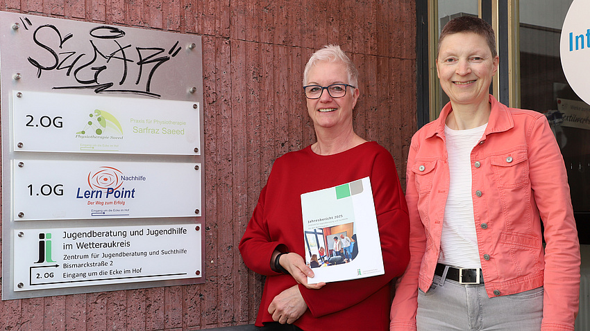 Kreisbeigeordnete Marion Götz und die Leiterin des Zentrums für Jugendberatung und Suchthilfe, Beatrix Falkenstein, stellen Suchtbericht 2025 für den Kreis vor