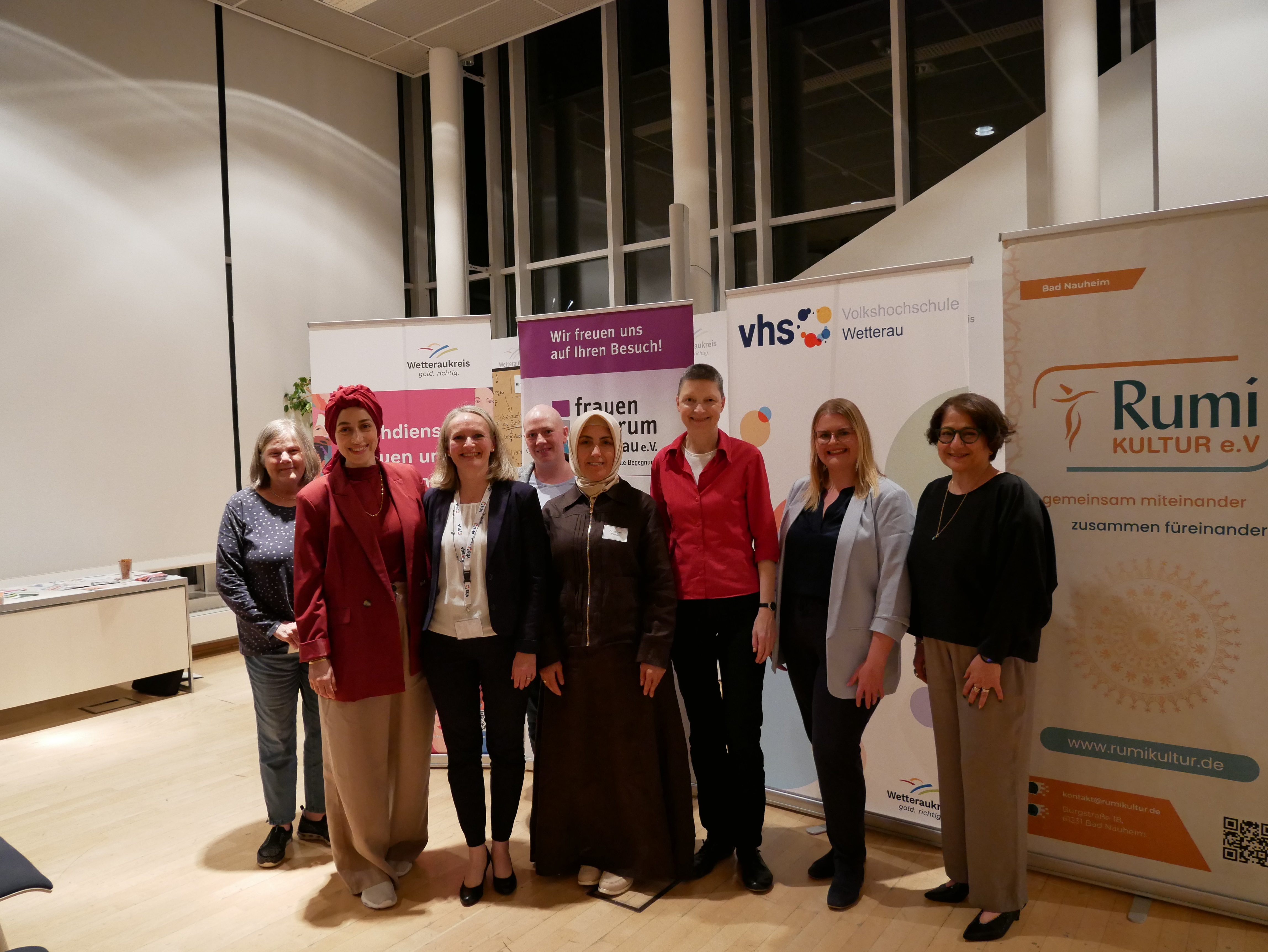 Die Interkulturellen Wochen (IKW) stehen bundesweit unter dem Motto „Dafür“ – passend dazu setzten der Fachdienst Frauen und Chancengleichheit des Wetteraukreises, Rumi Kultur e.V., das Frauenzentrum Wetterau e.V. und die Volkshochschule Wetterau mit der Veranstaltung „Integration leben – gelungene Beispiele aus der Praxis“ ein positives Zeichen für gelebte Vielfalt und gesellschaftlichen Zusammenhalt. Rund 50 Gäste aus Politik, Verwaltung, Ehrenamt und mit eigener Migrationsgeschichte kamen in Friedberg zusammen, um über Wege gelingender Integration zu sprechen.