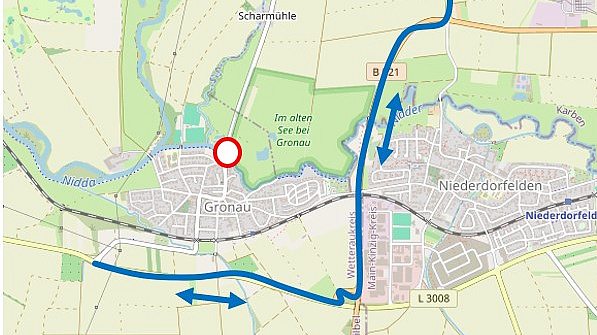 Der Bad Vilbeler Stadtteil Gronau ist während der Bauarbeiten ausschließlich über die L3008 zu erreichen.