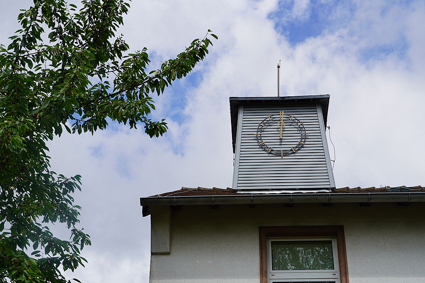 Der Uhrenturm auf dem Hauptgebäude war in die Jahre gekommen. Im Zuge der Sanierung wurden beschädigte tragende Holzbalken ersetzt, Schalbretter ausgetauscht, das alte Uhrwerk erneuert sowie Zifferblatt und Zeiger restauriert und neu gestrichen. Die Arbeiten sind abgeschlossen, die Kosten belaufen sich auf rund 26.000 Euro.