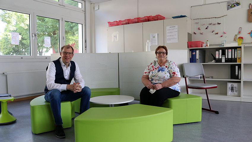 Schulleiterin Anneliese Zimmer freut sich, dass in der Vergangenheit eine ganze Reihe von Maßnahmen, wie etwa die schönen hellen Betreuungsräume, umgesetzt werden konnten. Landrat Jan Weckler kündigte an, dass im kommenden Jahr zudem geplant sei, die Essensausgabe zu verbessern: „Dafür soll die Lehrküche in eine Kochküche umgebaut werden und zur Essensausgabe ein Durchbruch zum Mehrzweckgebäude hergestellt werden. Gerade für die Kinder im Ganztag wollen wir die Rahmenbedingungen verbessern. Je länger Kinder in der Schule sind, umso mehr ist es notwendig, dass auch über die schulische Ausstattung eine angenehme Lern- und Betreuungsatmosphäre angeboten werden kann.“