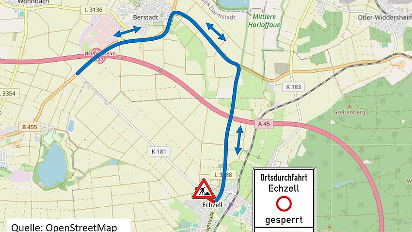 In wenigen Tagen startet die Straßenverkehrsbehörde Hessen Mobil im Auftrag des Wetteraukreises mit der grundhaften Erneuerung der Kreisstraße 181 in Echzell. Da die Arbeiten nur mit einer Vollsperrung auszuführen sind, müssen sich Verkehrsteilnehmerinnen und -teilnehmer auf Behinderungen einstellen.
