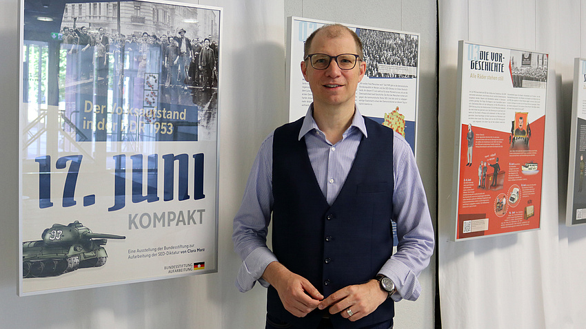 Im Foyer des Kreishauses erinnert eine Ausstellung an den Volksaufstand vom 17. Juni 1953. Landrat Jan Weckler hat die Ausstellung eröffnet.