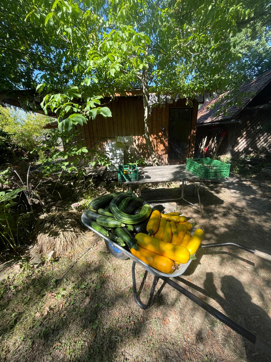 Mit unserer Gärtnerei machen wir den Gemüsebau zum Erlebnis. Wir bauen 50 verschiedene Gemüsekulturen, sowie Beerenobst, Schnittblumen und Kräuter erntefrisch für Euch an. Aus der saisonalen Vielfalt stellt ihr Euren Erntekorb individuell zusammen. Ihr kommt jederzeit vorbei, wenn es für Euch am Besten passt, um zu ernten, zu genießen oder sich zu begegnen und dabei das bunte Treiben und Gedeihen der Natur auf Euch wirken zu lassen. Aus ökologischen Gründen gilt unser Angebot vorrangig für Menschen wohnhaft in einem Umkreis von 5 Km.