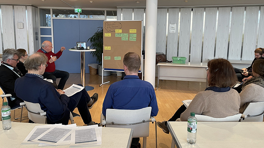 In kleinen Gruppen diskutierten die Teilnehmerinnen und Teilnehmer die verschiedenen Projekte. Gäste wurden per Videokonferenz zugeschaltet.