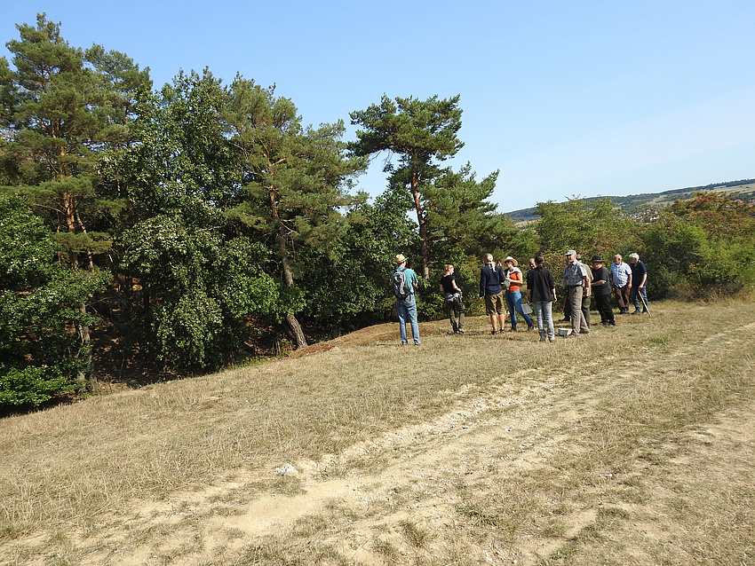 Zum Schutz der Besenheide begutachten die Exkursionsteilnehmer diese nur aus der Ferne.