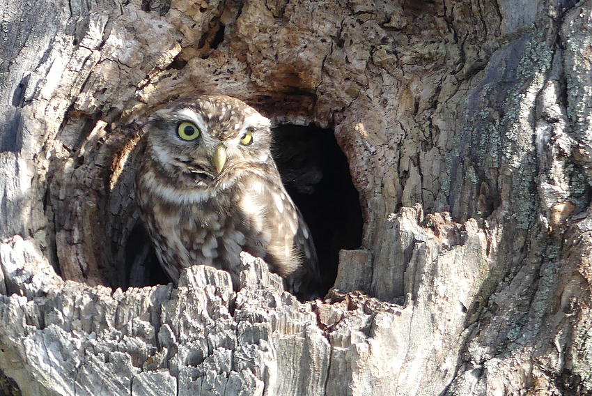 Ein Steinkauz hat sein Zuhause in einer großen Baumhöhle gefunden (Foto J. Wilhelm, Naturschutzring Waldsiedlung)