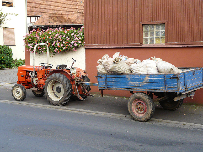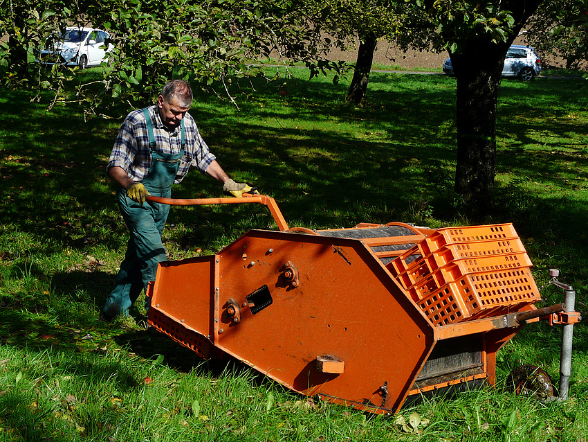 So geht das Einsammeln leichter. Reiner Bonacker von der gleichnamigen Kelterei und Sammelstelle in Glauberg mit seiner Lesemaschine