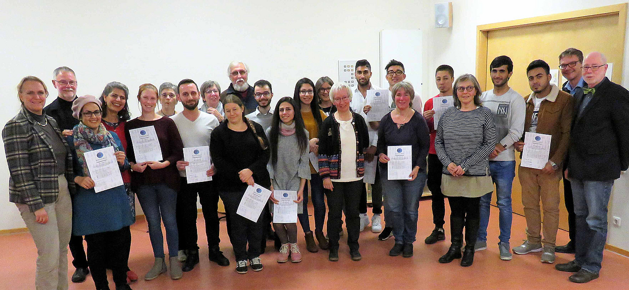 Integrationslots/innen bei der Zertifikatsübergabe © IZF Friedberg