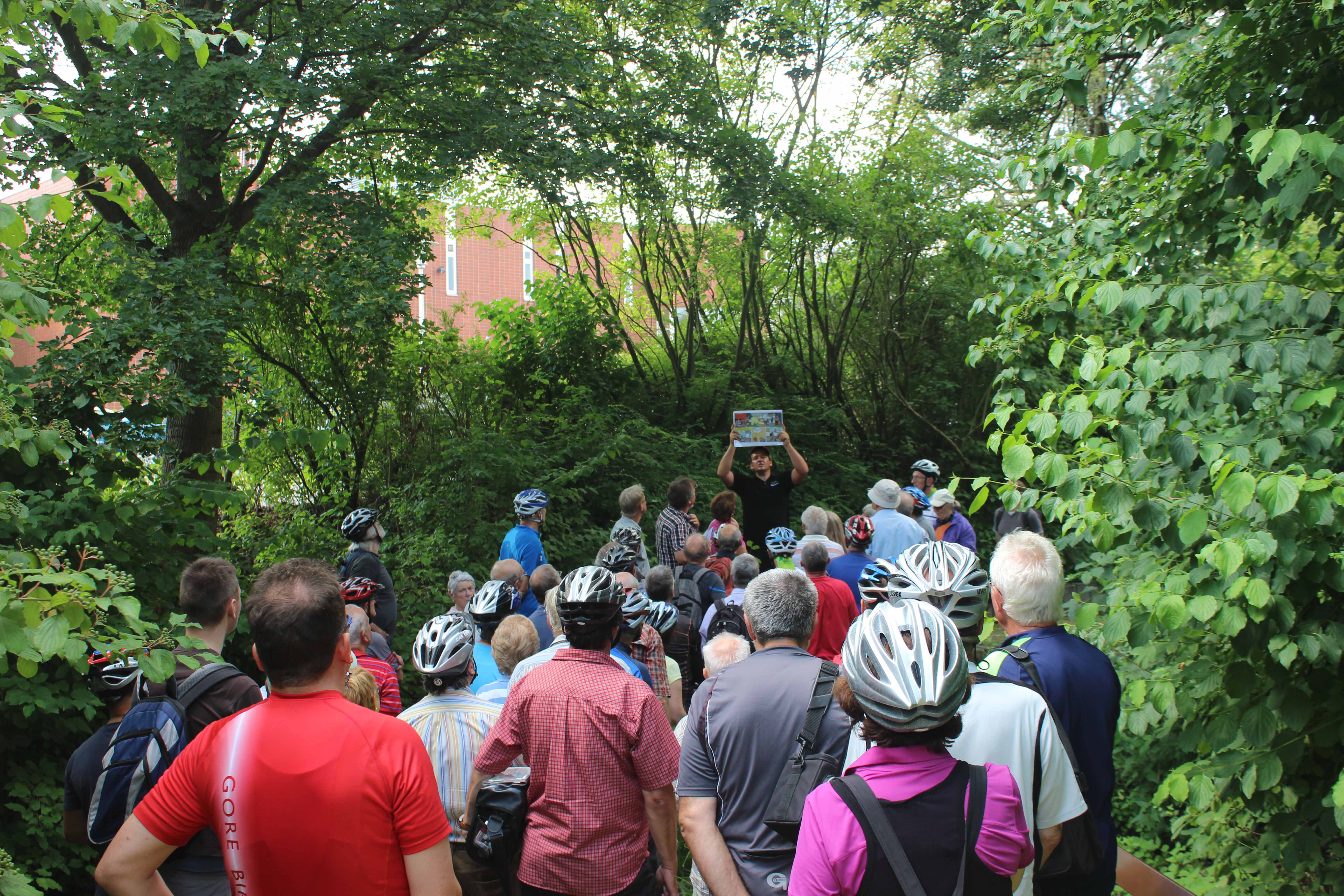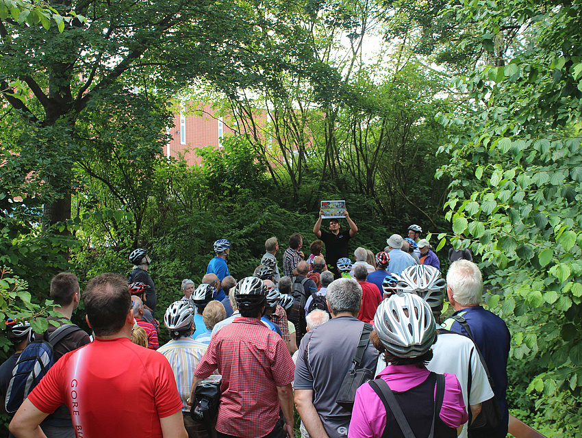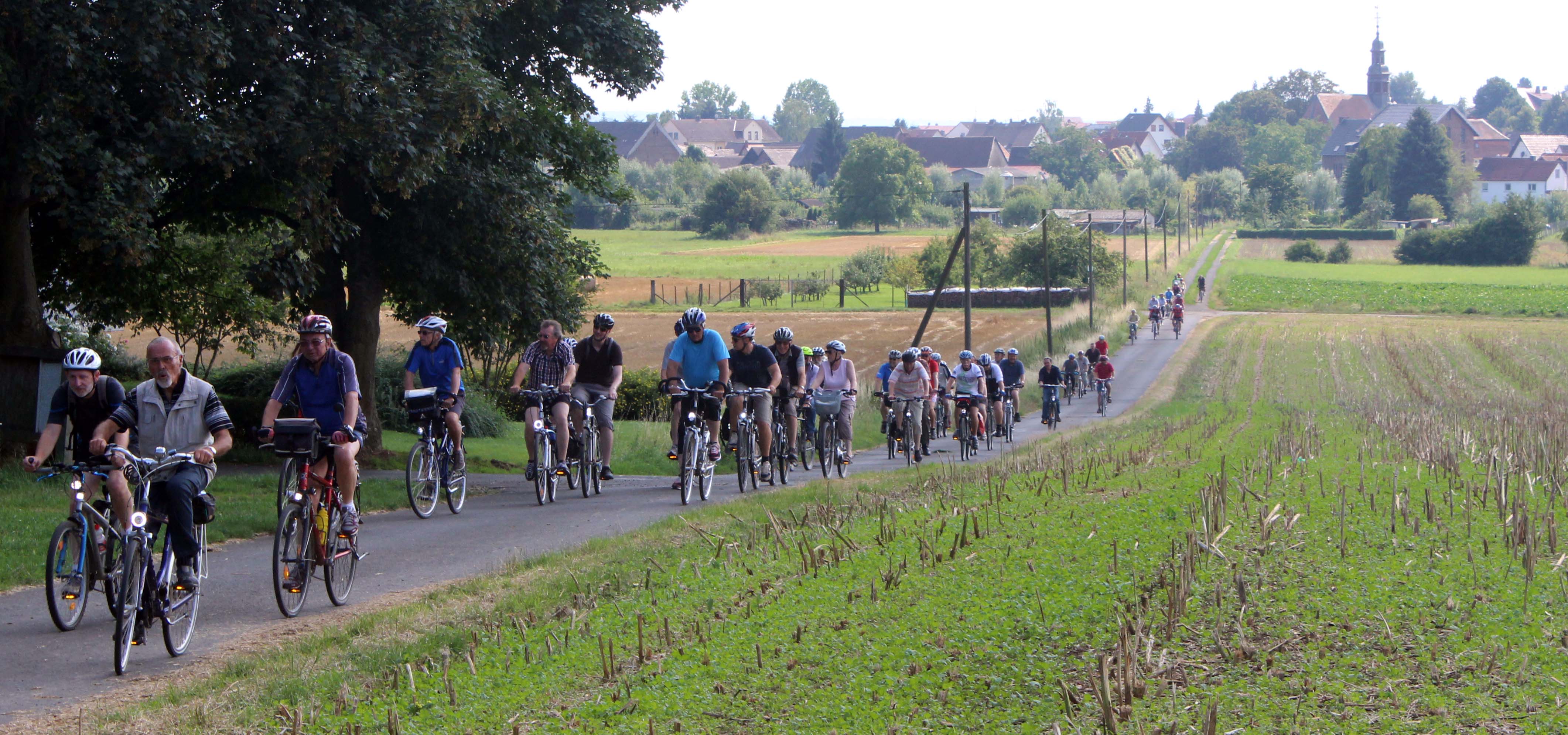 Die 11. Archäologische Radtour führte im August 2014 durch die Gemarkungen von Friedberg. Zum Start trafen sich gut 60 Teilnehmer im Hof des Friedberger Wetterau-Museums.